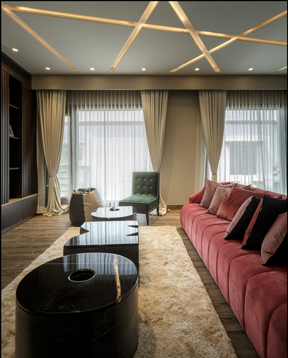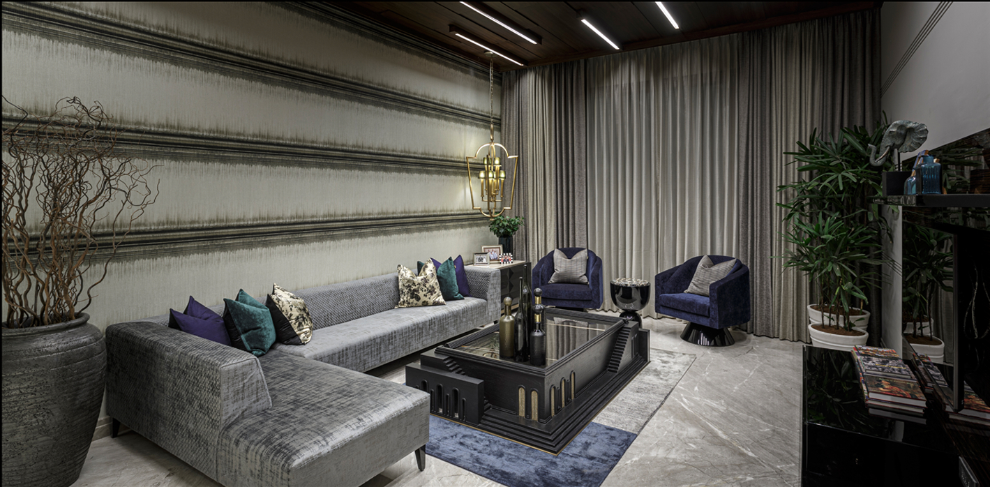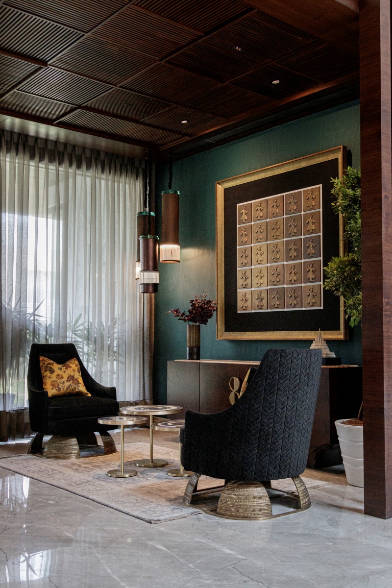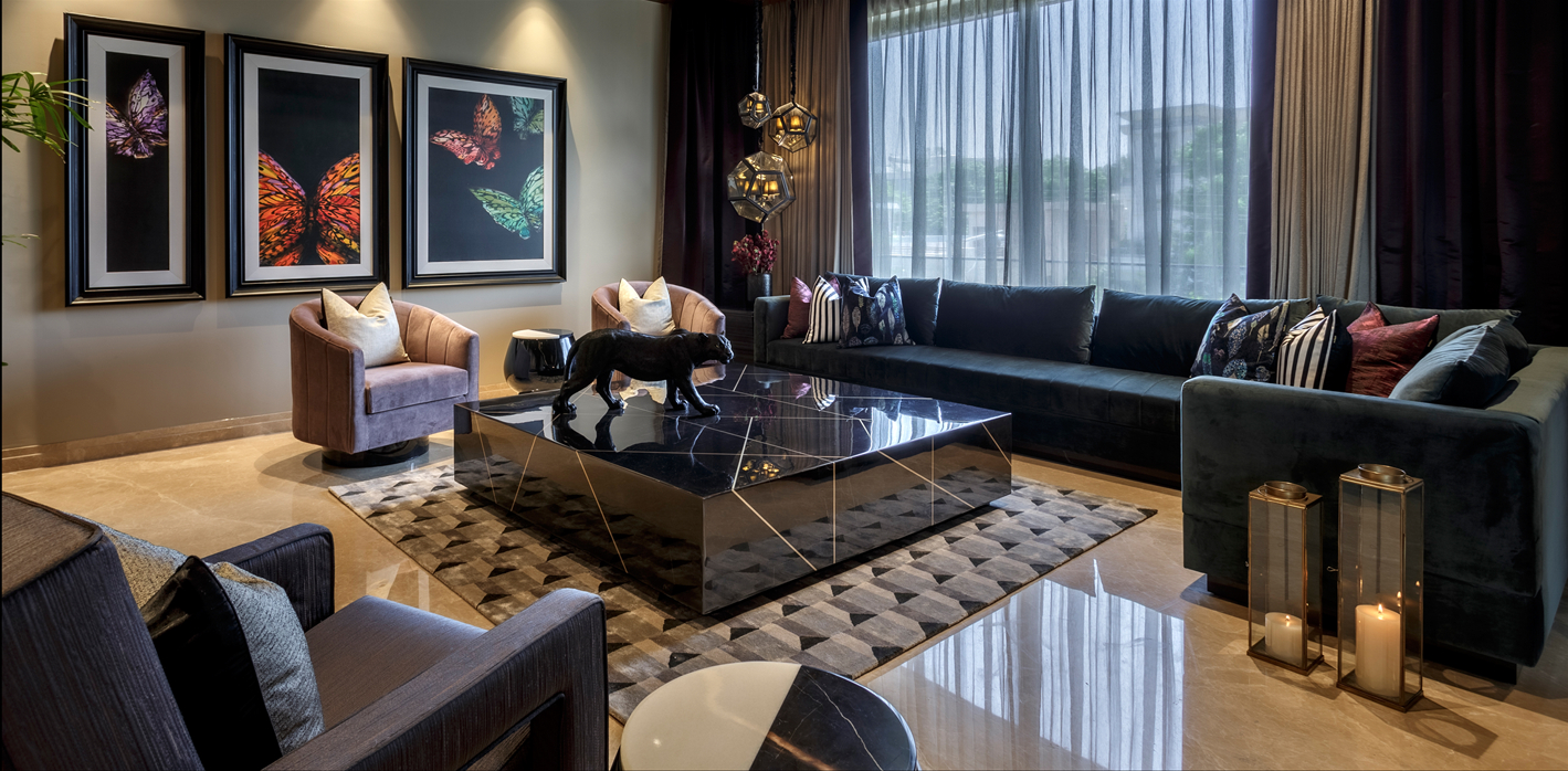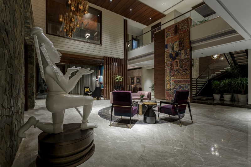 Designed for a family of six, this home is a statement in colour, texture and pattern. The massive space of 13,200 square feet is anchored by a double height lobby that is adorned with larger-than-life artwork, lights and sculptures.